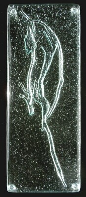 This is another instance when the glass was slightly "overfired" resulting in much "sharper" image. This tray has very different - harder feel to it partially from more defined background texture but mostly from stronger feel from it's lines.