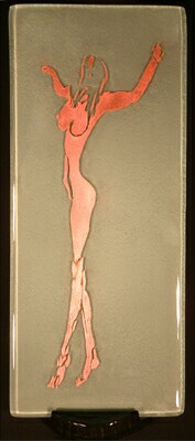 This design, is painted and fused inside two sheets of clear glass, It is available in total thickness of about 3/8 of an inch thick clear glass. The back surface of the tray can be "frosted" to create 3D impression from the design, since the frosted surface will create a "canvas" for the shadow of the painted image