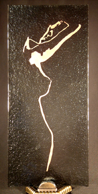 Reflective Metallic Paint fused onto Gray Glass.