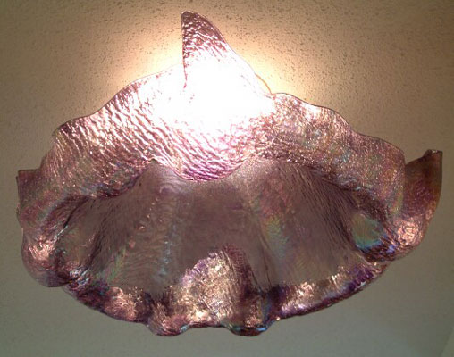 Title - Dome Light Drape Sculpture in Light Blue Iridized Glass