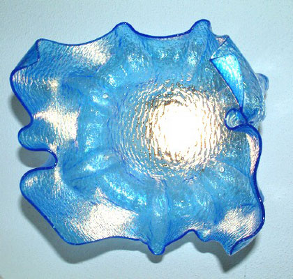 Title - Dome Light Drape Sculpture in Light Blue Iridized Glass Dimensions - 12" diameter x 11" long