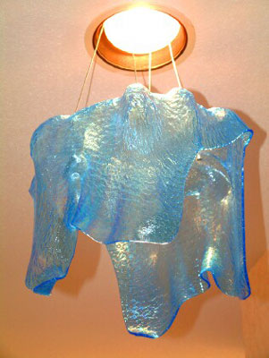 Title - Dome Light Drape Sculpture in Light Blue Iridized Glass Dimensions - 12" diameter x 11" long