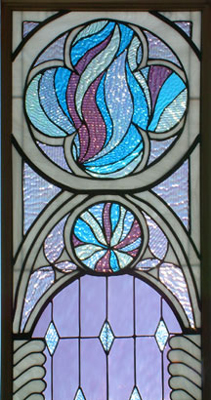 glass picking up the color of the stained glass on the way trough